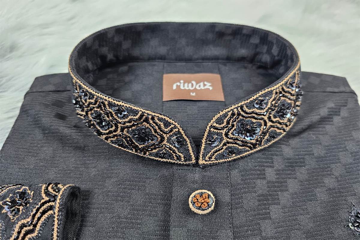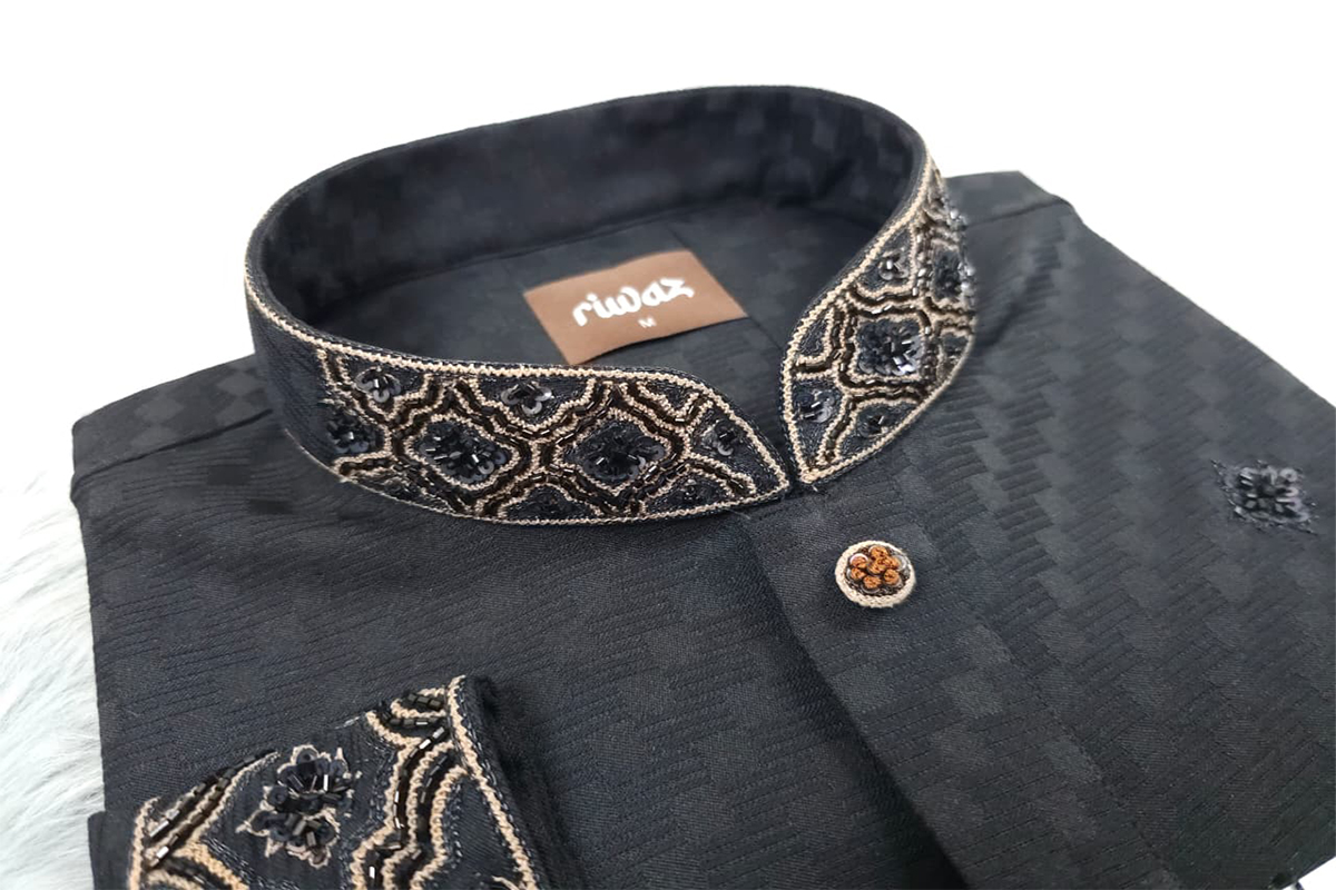 Riwaz premium panjabi featuring custom-made white embroidery across the entire body, enhanced with sequence embroidery work on lavender fabric. A refined masterpiece blending delicacy, elegance, and luxury.