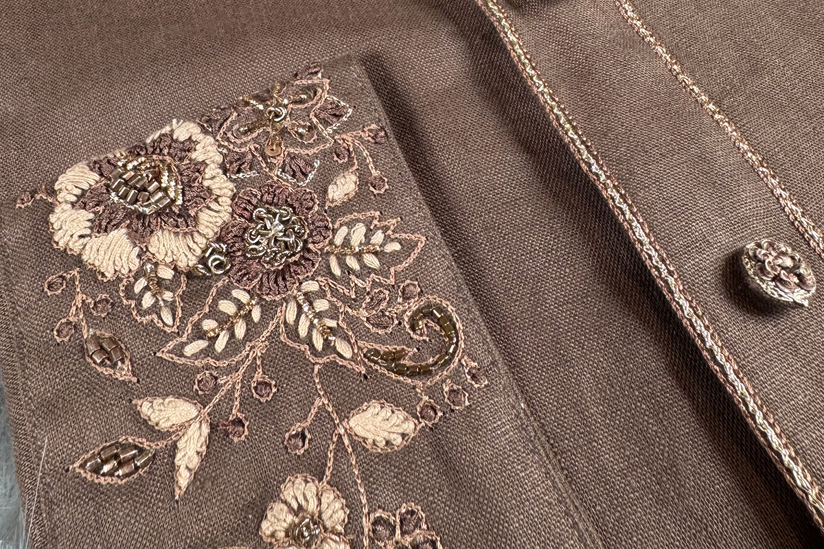 Riwaz premium panjabi featuring custom-made white embroidery across the entire body, enhanced with sequence embroidery work on lavender fabric. A refined masterpiece blending delicacy, elegance, and luxury.